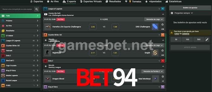 O bet94 oferece uma grande seleção de opções de apostas em e-sports com probabilidades competitivas